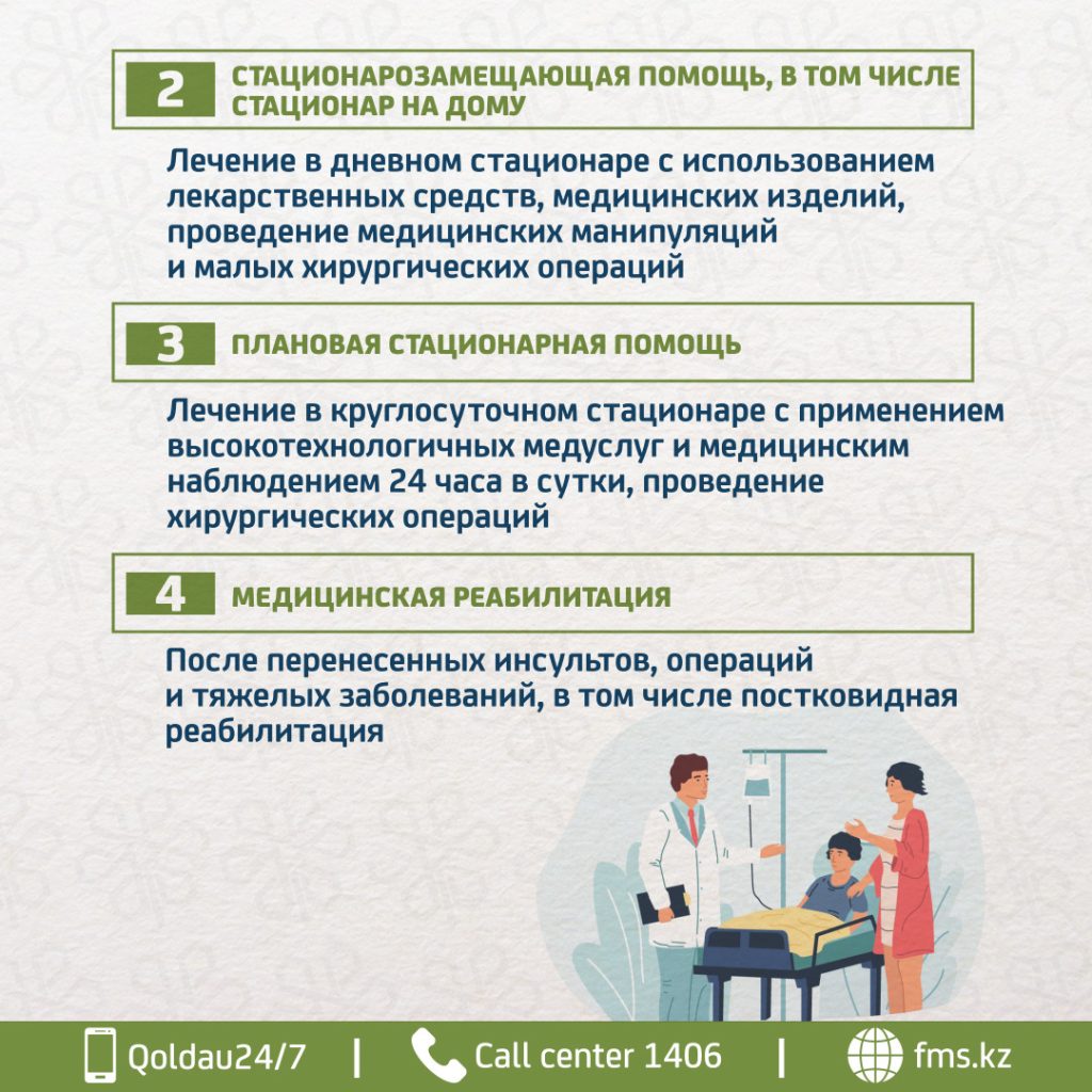 Если вы Застрахованы в системе ОСМС и регулярно вносите платежи в Фонд медстрахования, вам доступны: